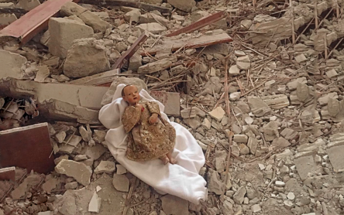 The Christ Child amidst the rubble. Camerino, Monastero Santa Chiara