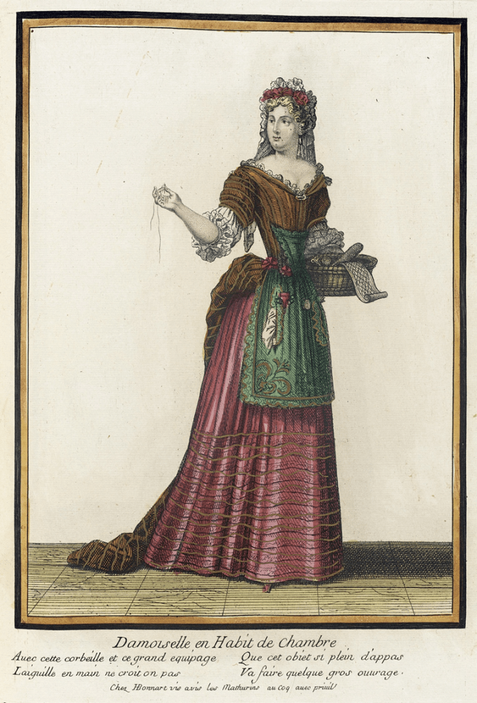 - On the role of fashion prints in disseminating contemporary dress see Elizabeth Davis, ‘Habit de qualité: Seventeenth-Century French Fashion Prints as Sources for Dress History’, Dress, 40 (October 2014), pp. 117–143. ↩︎