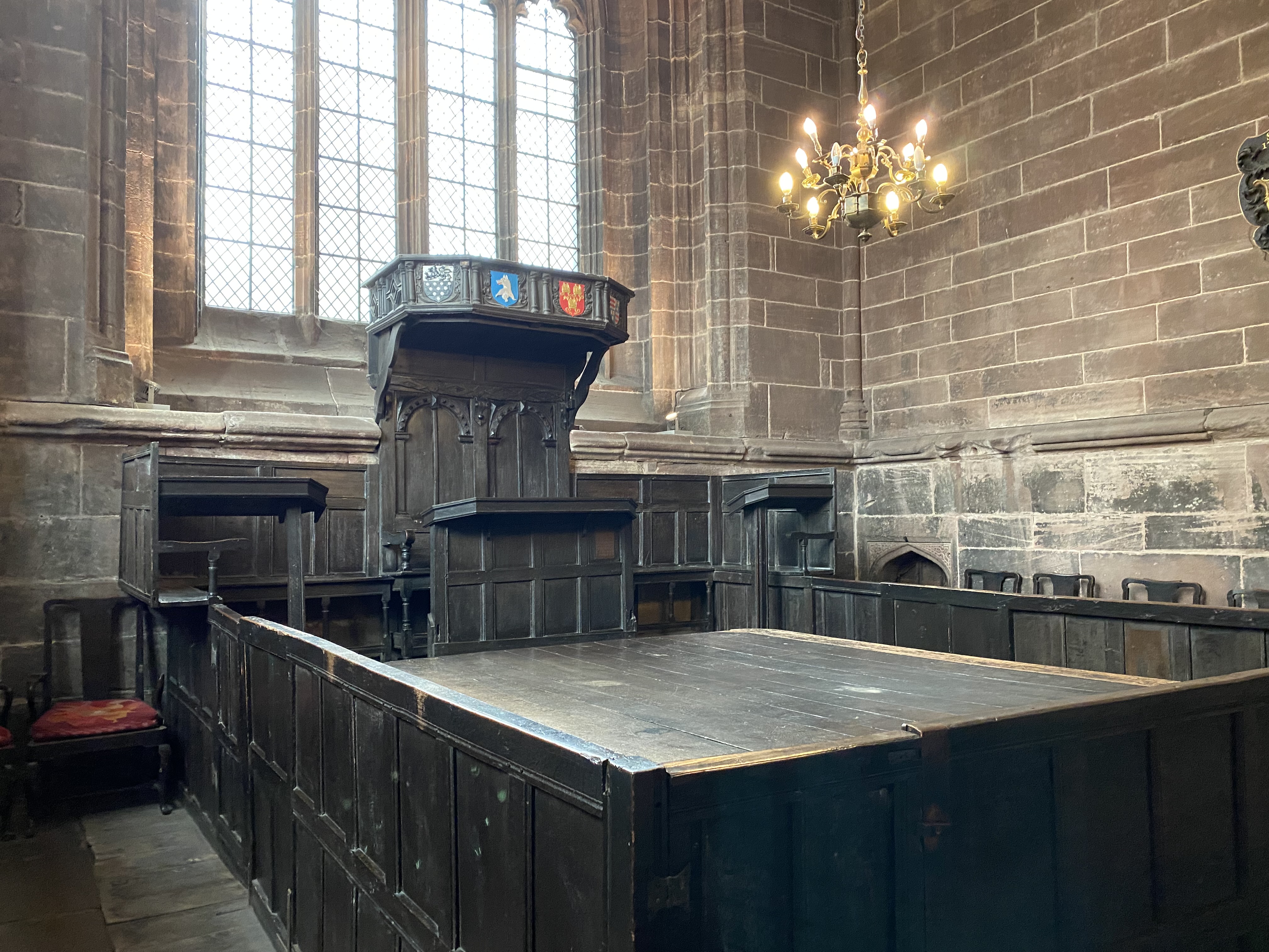 Tucked away in the southwest corner of Chester Cathedral lies a small, unassuming room, often devoid of the crowds that the rest of the cathedral attracts. Apart from being an interesting addition to any visit to the Cathedral, this room bears another significant distinction: It is one of the only courtrooms for a 16th century Consistory Court surviving intact.[1]