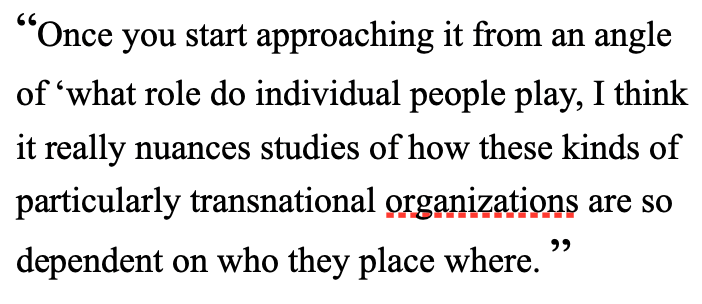 Oral history, as well, is a very interesting source base. It really has exemplified to me how you can tap into networks of people. You interview one person and they say ‘well, I’ll put you in touch with that person, and put you in touch with that person’. That only underscores for me the importance of studying personal relationships and networks within an organization.