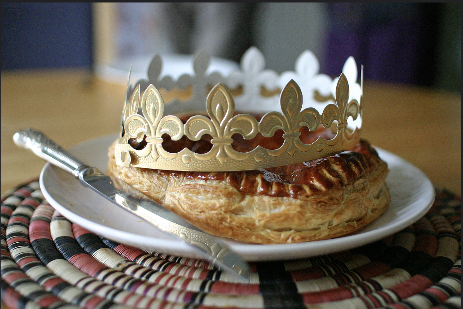 In the spirit of still producing a post loosely related to the senses (or food, rather), this advent calendar was going to include an edible gold recipe. It turns out that this is both difficult and risky to make! I’ve instead suggested a recipe for a ‘galette des rois’ – a ‘king’s cake’ (though it is more like a pie than anything else). Associated with the Three Kings, this gold-coloured dish is a staple in much of the north of metropolitan France around the feast of the Epiphany. A porcelain figurine is hidden within the thick frangipane of the cake. Whoever finds the figurine is crowned king or queen of the day. Slices are distributed ‘fairly’ by having someone hide under the table. This is typically the youngest member of the family, who crouches well out of sight of the dish, and calls out the names of guests to allocate slices of the galette as it is being cut. This tradition (though perhaps not the cake itself) is purported to have its roots in Saturnalia celebrations, for which the Roman historian Tacitus relays a similar tradition.
