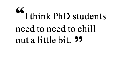 I think it needs to be made much clearer to graduate students, particularly if they have any ambition of pursuing an academic career, that there are three core parts to it, alongside a couple of minor others: one, the dissertation; two, teaching experience; and three, publication history. If that was made far clearer from the start, when you’re putting an application forward, I think a lot of people would rethink how they’re going to structure their PhD, rather than having this gradual crisis that dawns when people realise that they’re halfway through their second year and they’ve got no publication history or they haven’t given as many talks or have only just started teaching, and it just contributes to this terrible atmosphere of anxiety that you see not only within yourself but in other PhD students as well.